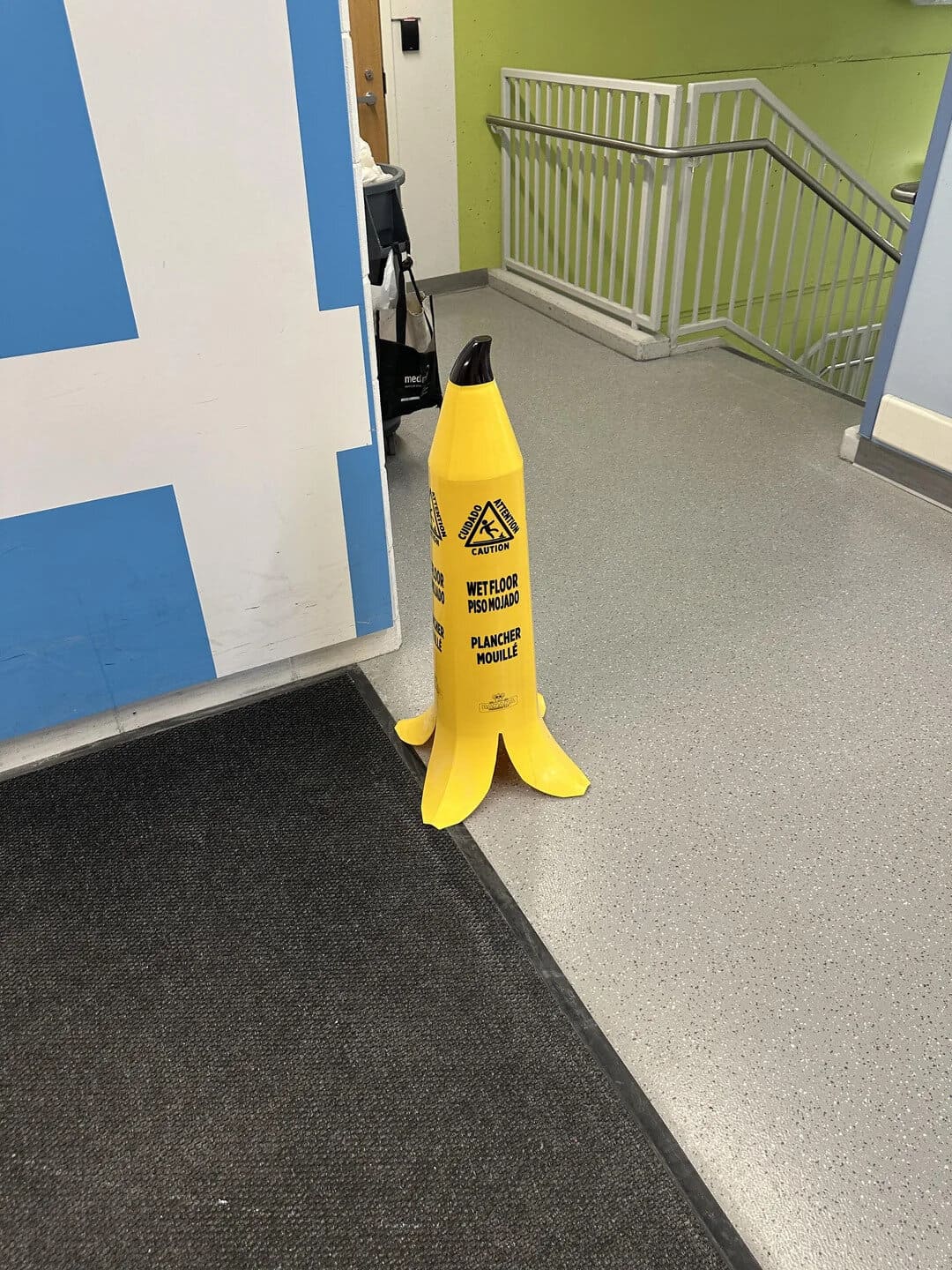 13. “Banana shaped ‘wet floor’ sign at a local Children’s Hospital”