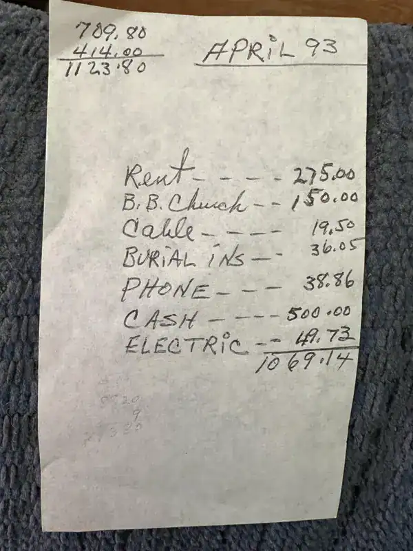 10. Monthly expenses from someone in April 1993