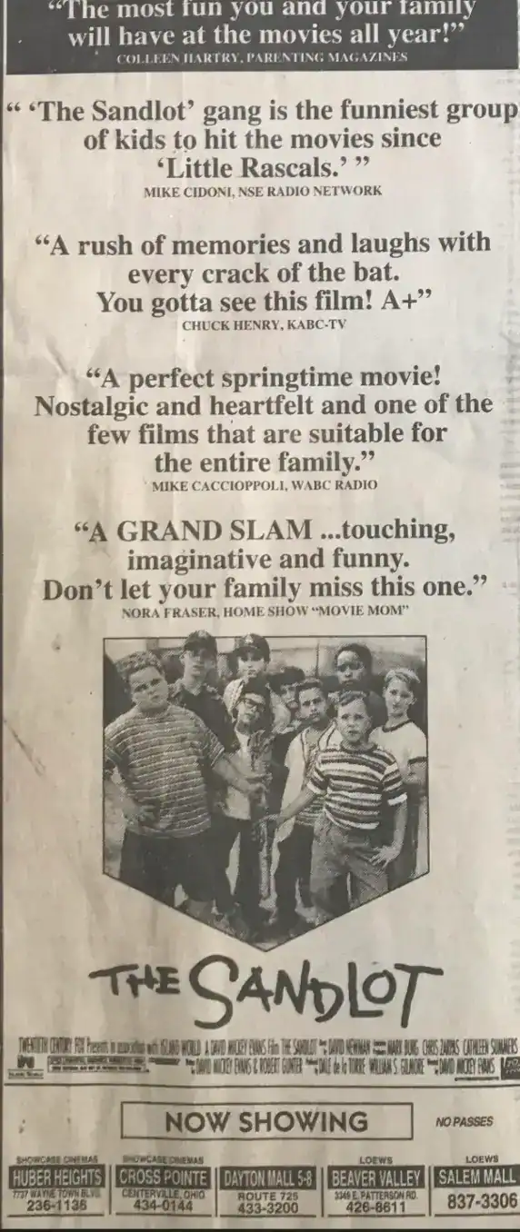 14. 1993 newspaper ad for The Sandlot