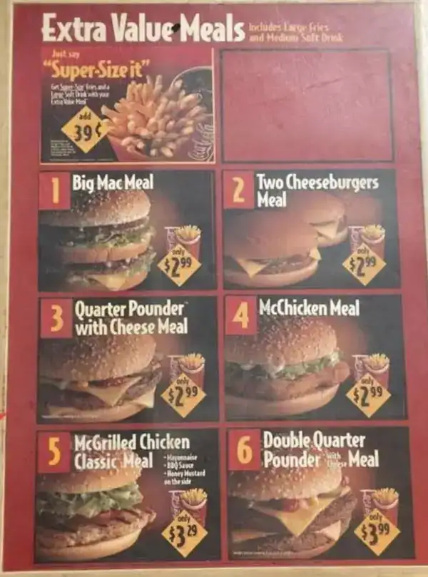 21. 1990s McDonald’s meal menu