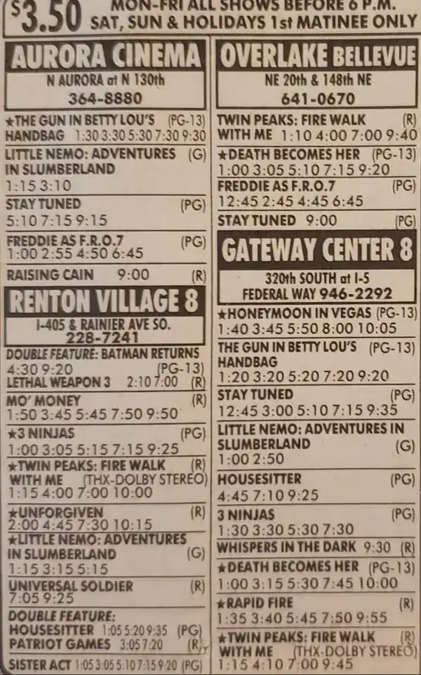 22. 1991 movie listings in a newspaper