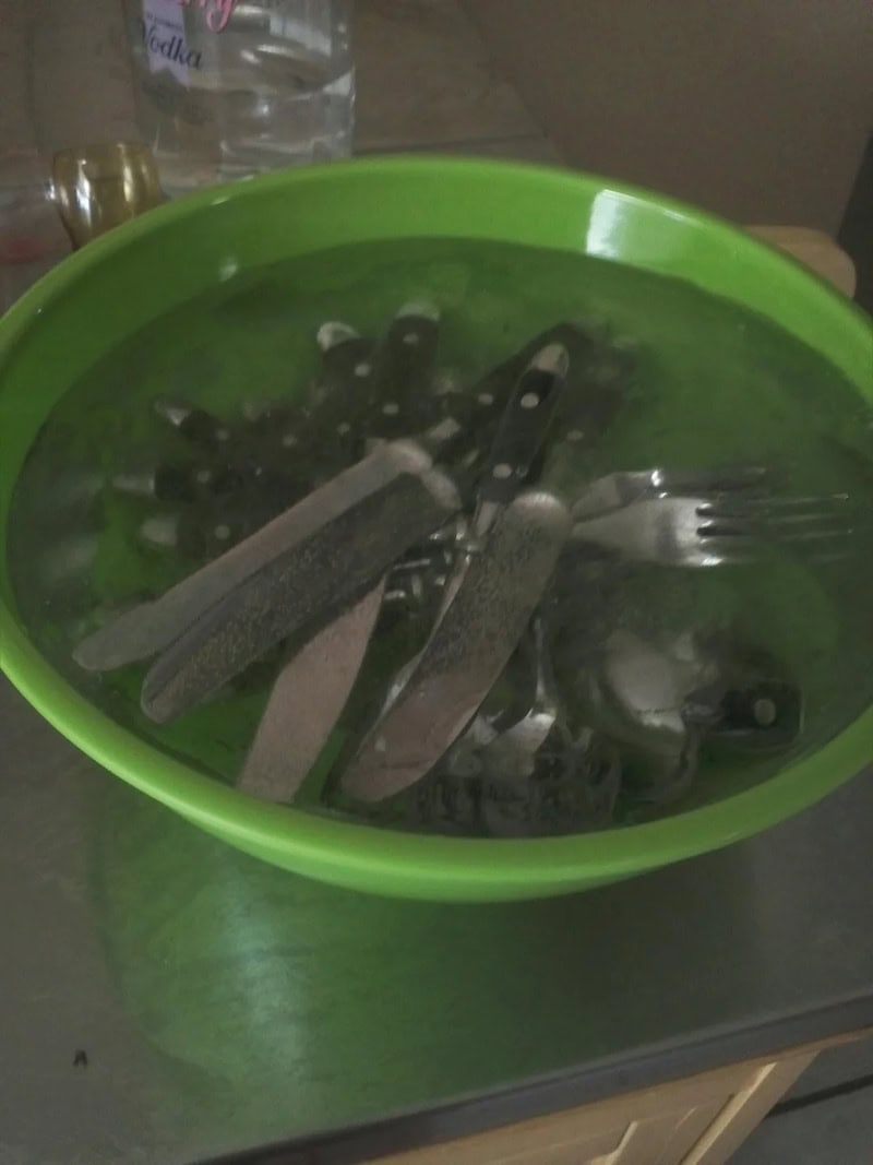 4. “Woke up morning after party to all the silverware, oven knobs, and glasses in freezer stuck in bowls of ice”