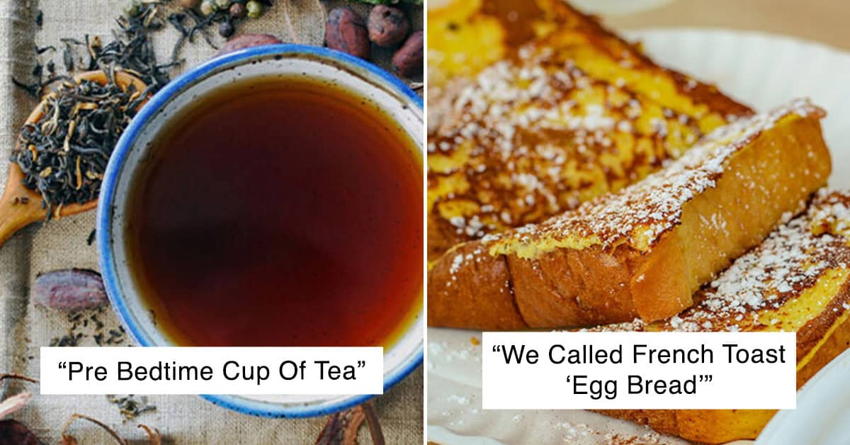 Pre bedtime cup of tea. Every night around 9pm we all will sat back down at the dining table and drink tea in proper tea set. My dad will also sometimes cut up a baguette and we will have it with butter and jam dipped in tea, otherwise whatever cookies/snacks around. I used to really enjoy this time, its like a lot calmer dinner time. After tea time then we all will go to bed. Only realise its not a thing when i moved out.