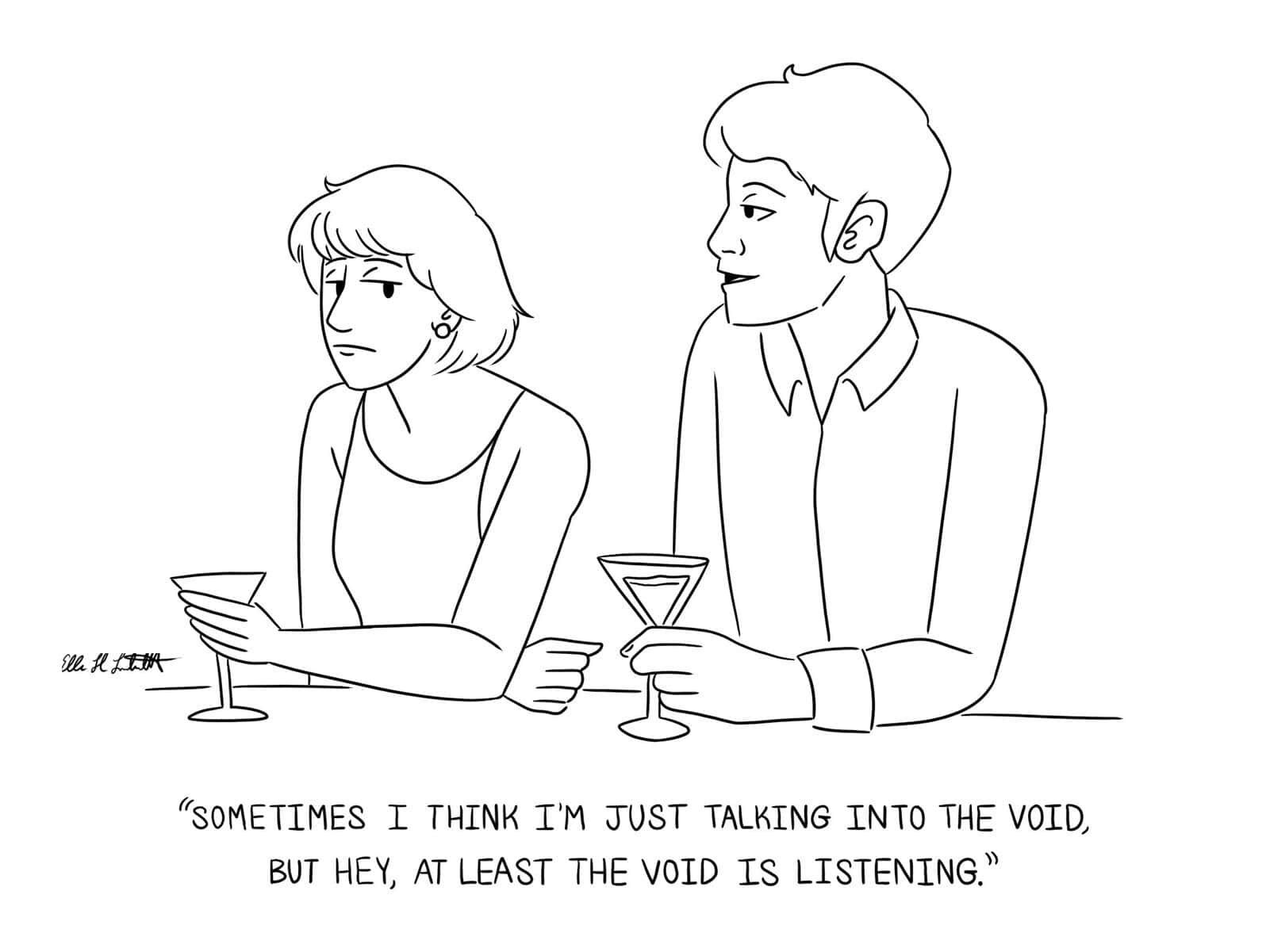 That’s exactly why I enjoy the work of Ellen Liebenthal. Her comics have that sharp, understated wit that rewards you for paying attention, and when the punchline clicks, it’s incredibly satisfying. It’s smart humor without trying too hard, which honestly makes it even funnier.