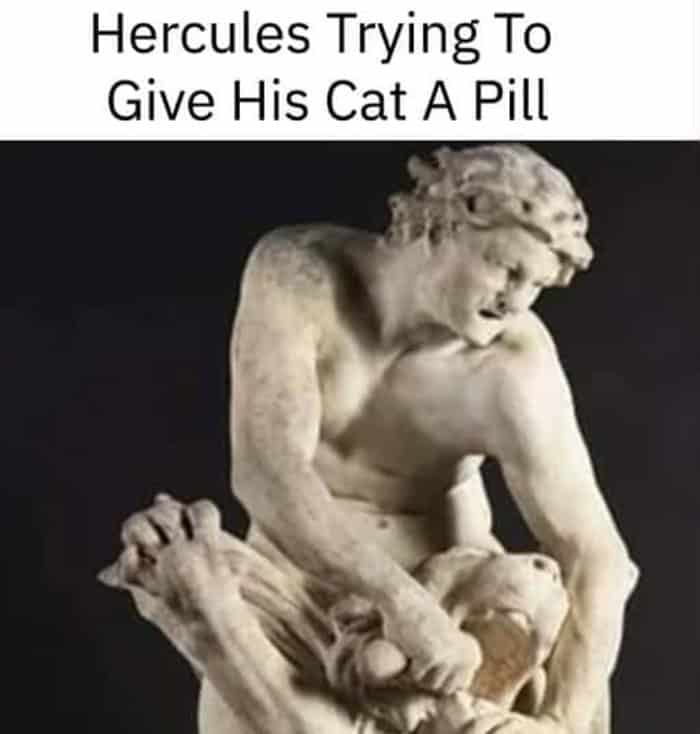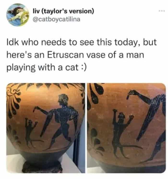 I don’t know who needed this today, but as someone whose cat has knocked over exactly one too many things, these classical art memes get it.