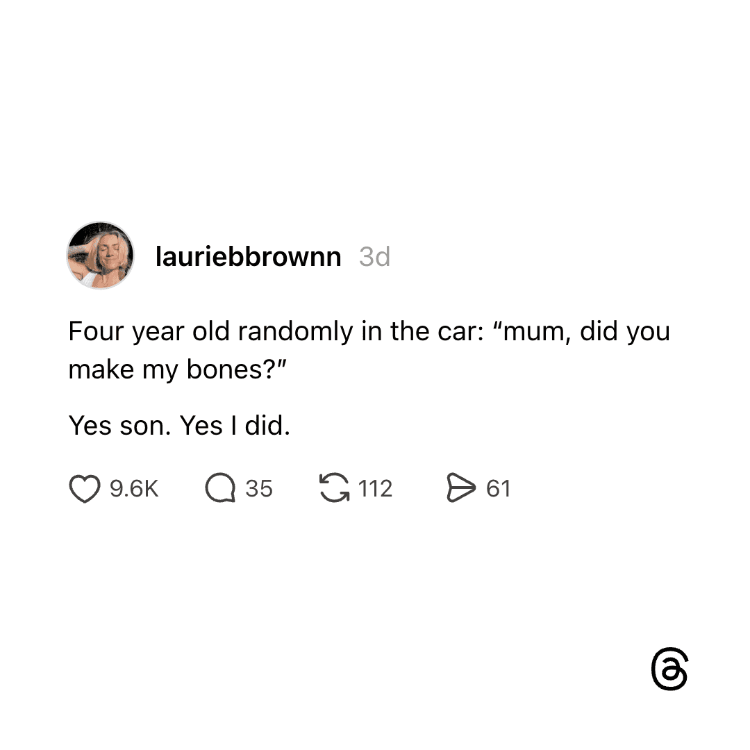 Nobody warns you that having kids is just paying to repair a small person who actively tries to destroy themselves on a daily basis. I love him more than anything but the kid treats his skeleton like it’s a suggestion.