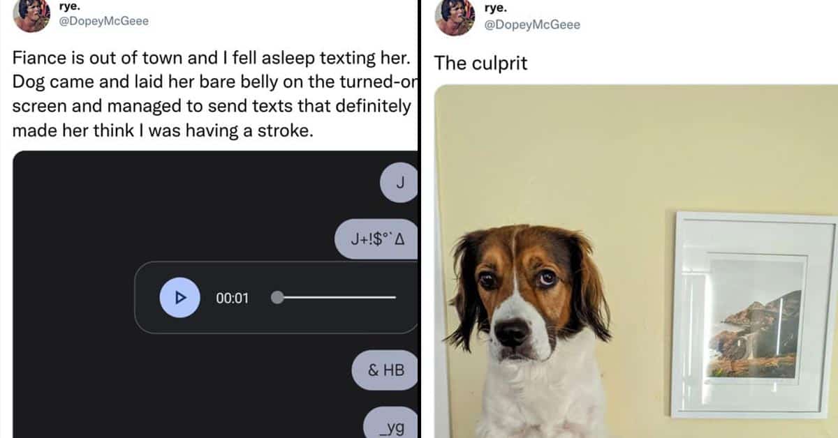 Owning a dog brings so much joy to life, but sometimes they get up to trouble. In the case of Rye, whose dog texted his fiancé odd messages while she was out with a friend. Leading her to think he was having a stroke.