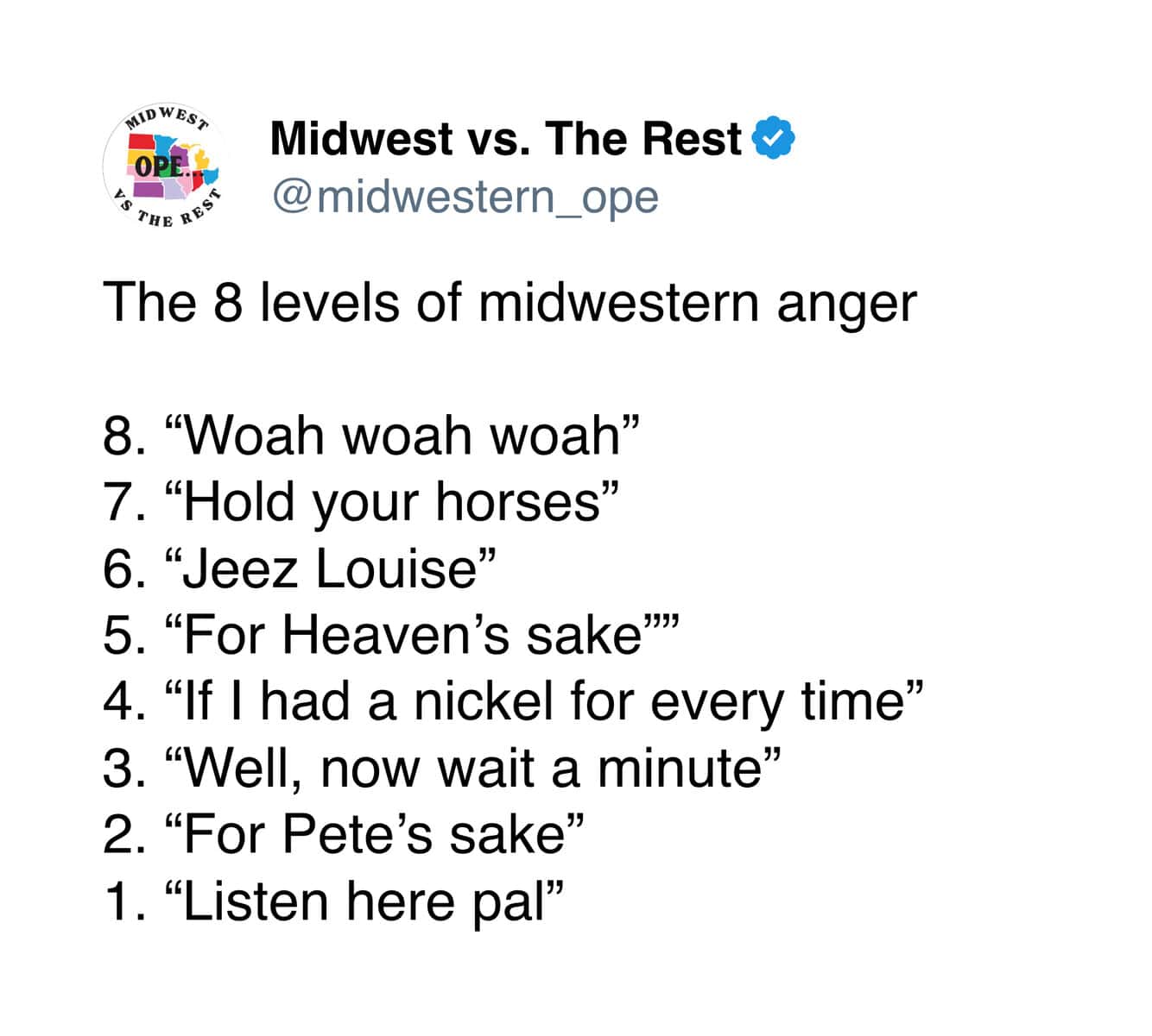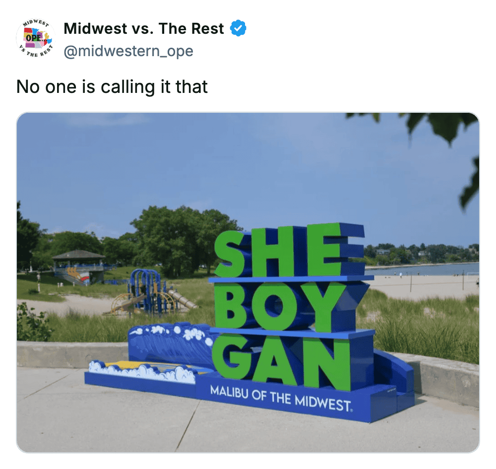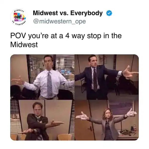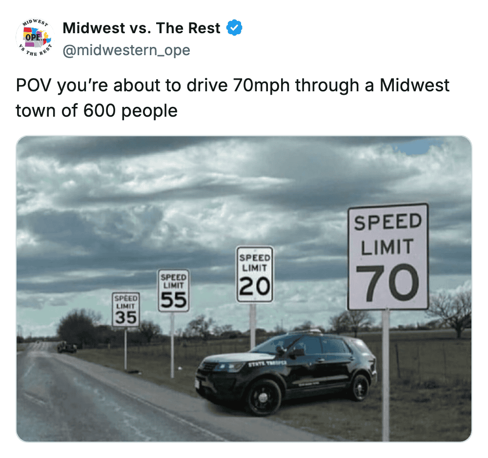 The humor out here has that same vibe. It’s a little self-deprecating, a little wholesome, and always delivered with that unmistakable Midwestern tone. You can joke around, but you’re still going to say “ope” and hold the door for someone right after.