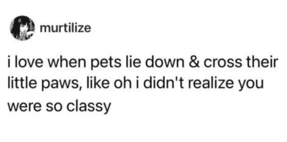 So when I see people joking about choosing their pets over literally anyone else, I don’t even see it as a joke. I get it completely.