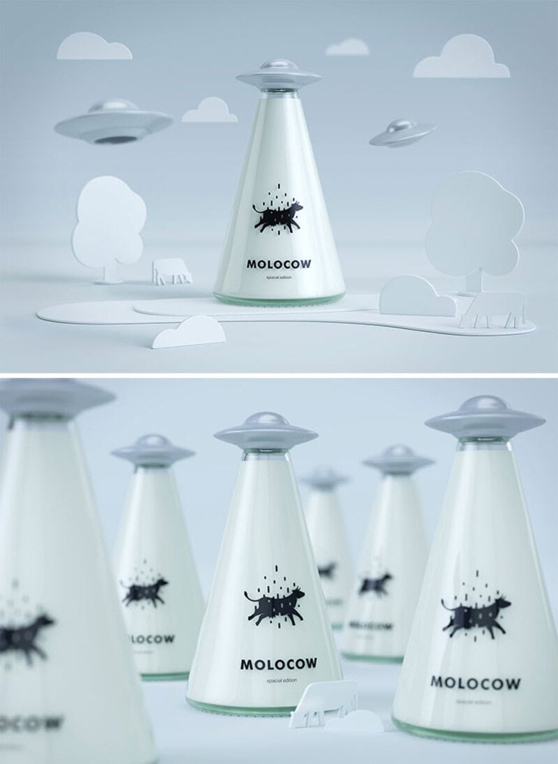 12. “Simple And Clever Milk Branding Concept That Features A UFO Space Ship Lid”