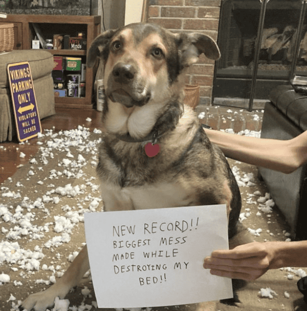 That’s why dog shaming pics always kill me. These pups did the crime, and now they’re doing the time… but honestly, being that cute should count as time served.