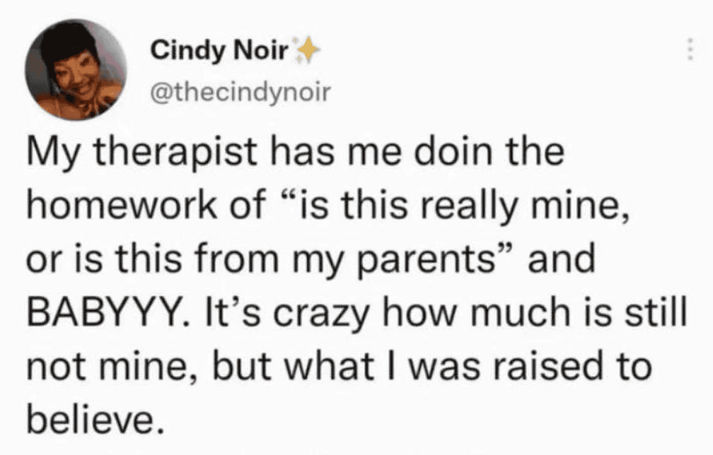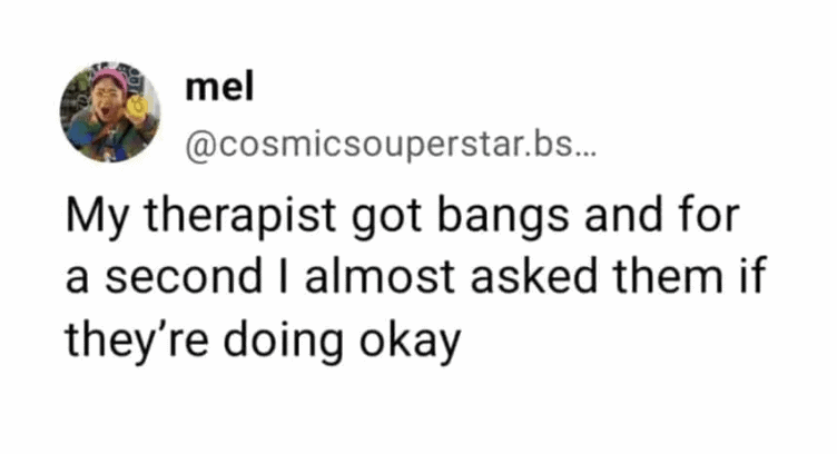 Therapy has a way of holding up a mirror you didn’t ask for, and sometimes all you can do is laugh at what you see staring back at you.