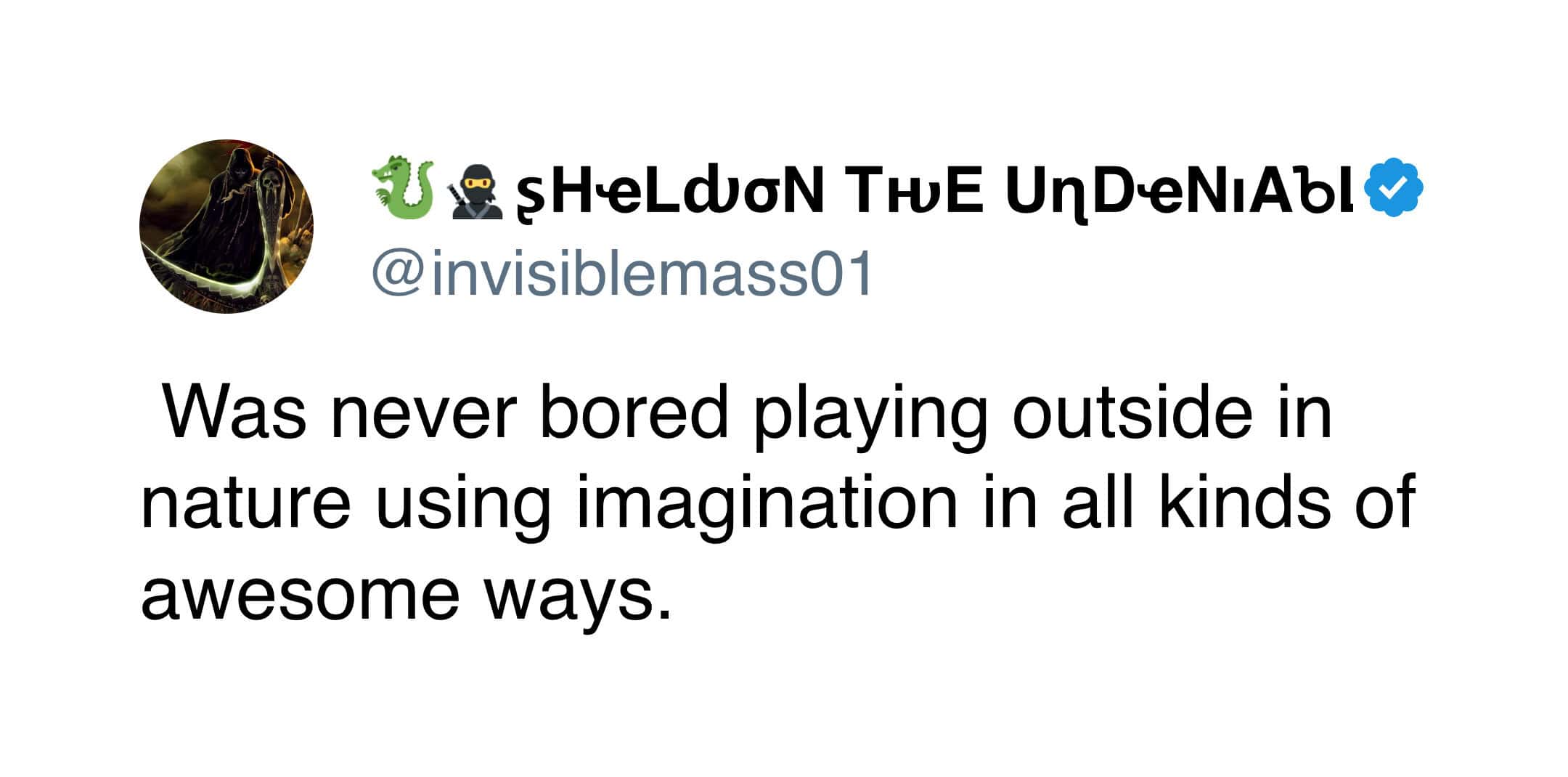As an elder millennial, I really think that’s why my imagination works the way it does now. We had to entertain ourselves, and we got pretty good at it.