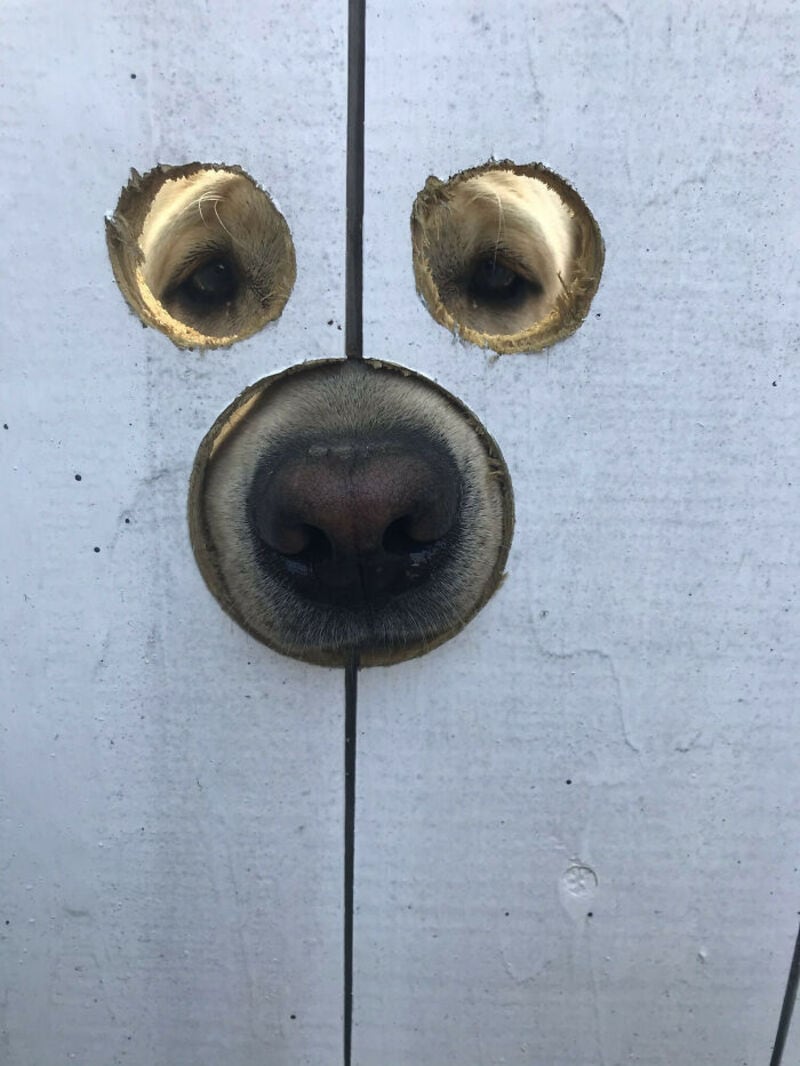 12. “My Friend Made Holes In His Gate So Gus The Labrador Can See And Sniff”