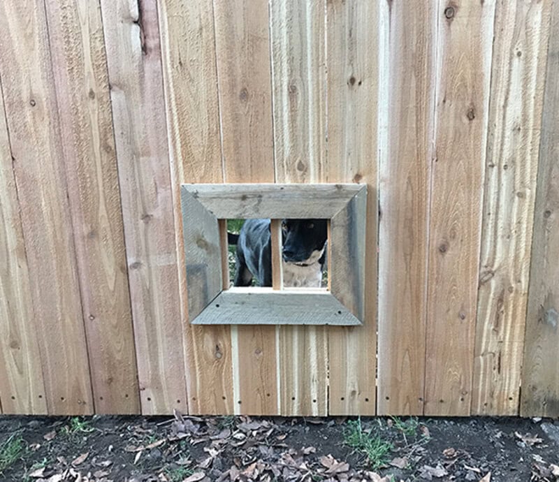23. “So My Neighbor Has Been Building A New Fence. I Suggested A Window For His Dog Jack Who Likes To Say Hi To Us Everyday Through A Current Missing Board. Woke Up To This Today”