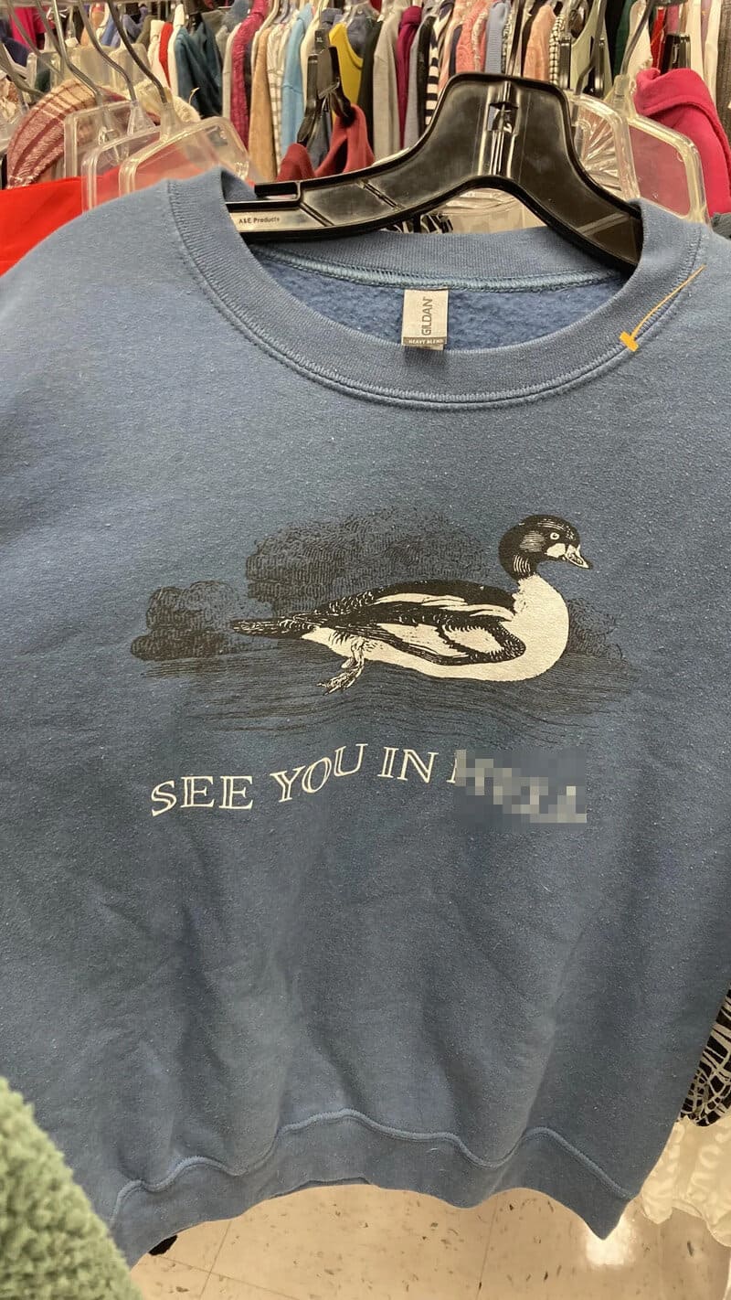 2. “Found this unhinged sweatshirt at goodwill today”
