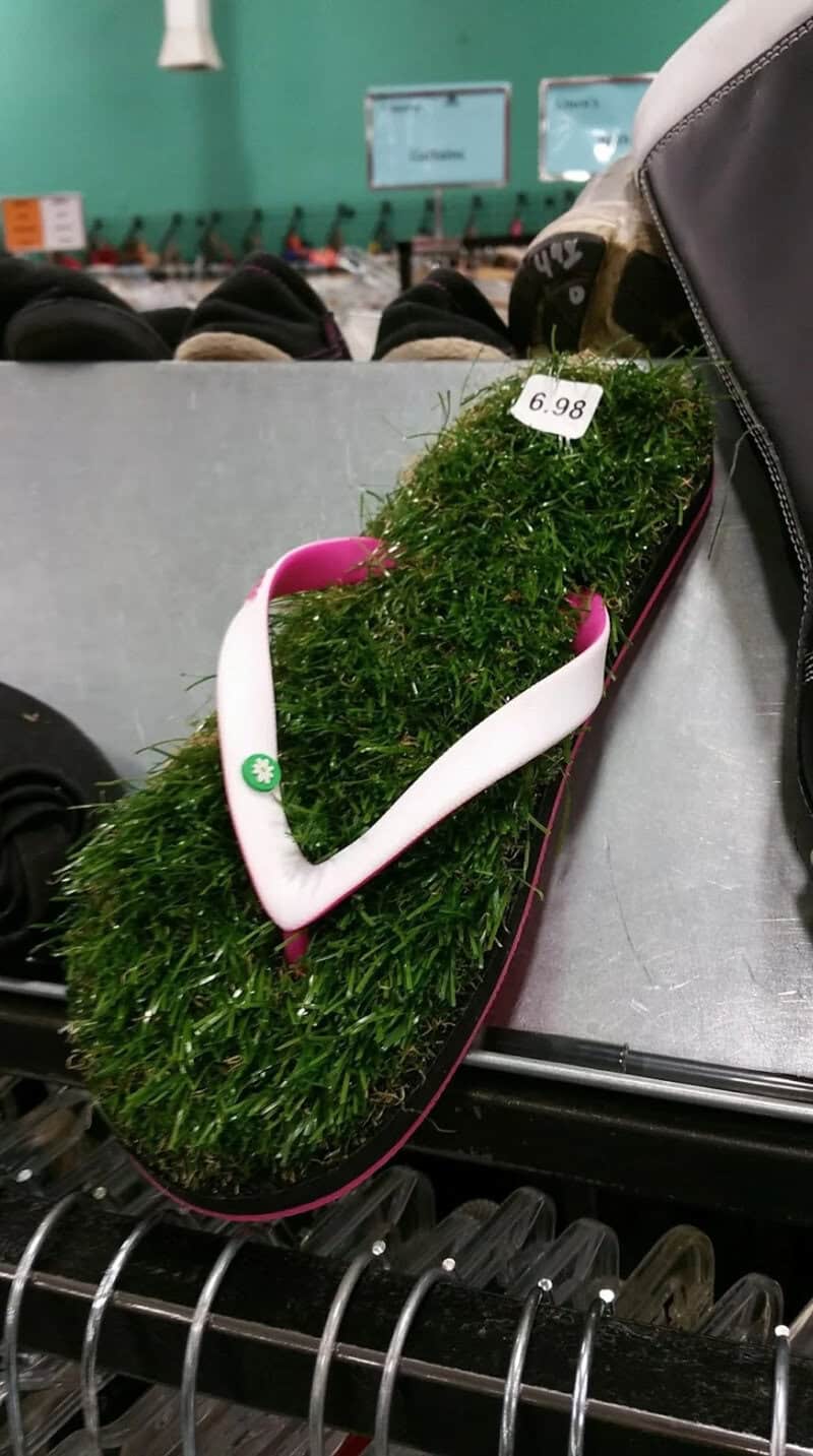 20. “Weird grass flip-flops found at thrift store”