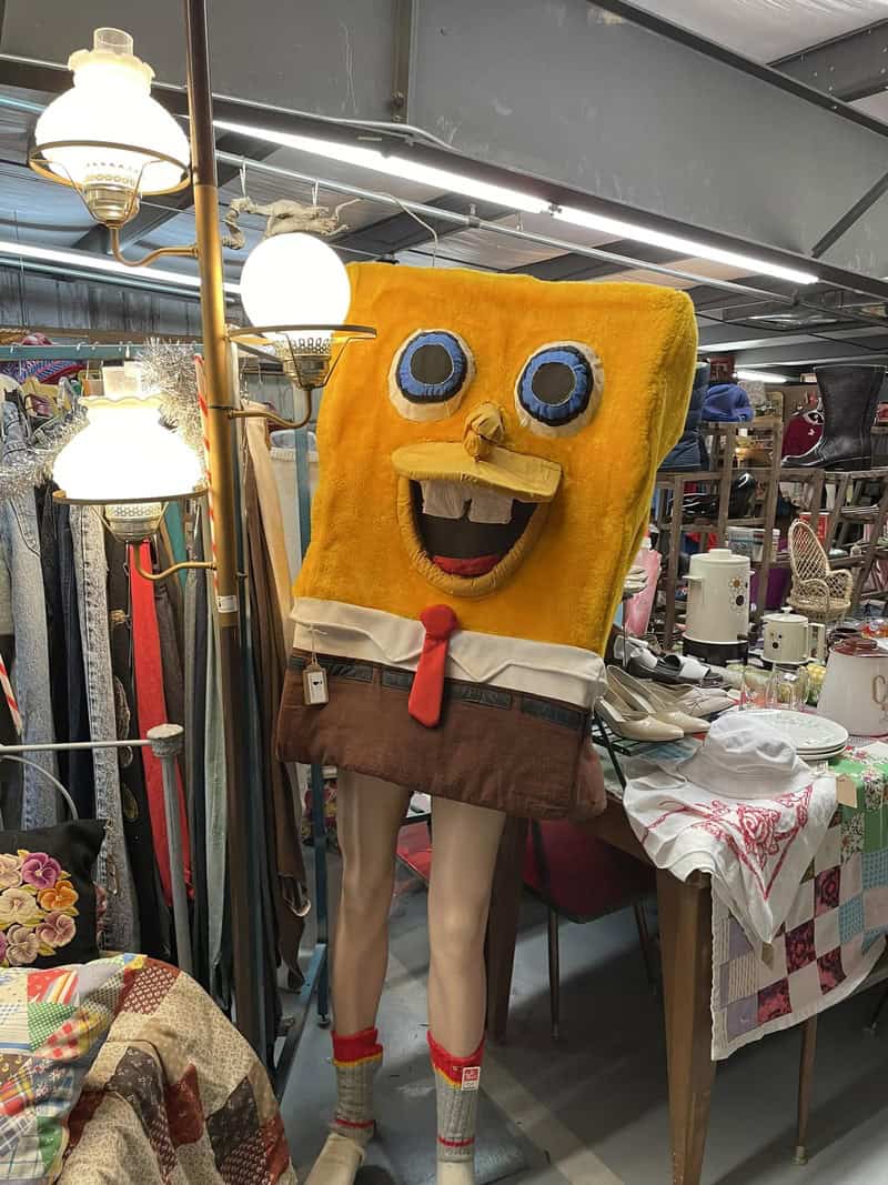 9. “I give you guys cursed SpongeBob costume (was not for sale) but found at camp flea in ozark up in the vintage clothing loft”