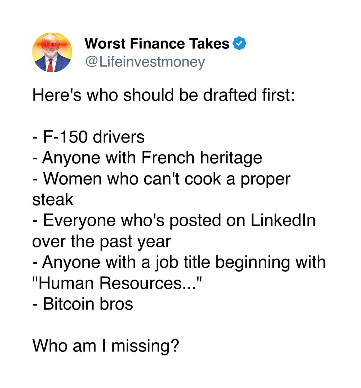 “Worst Finance Takes” — (21 Tweets)