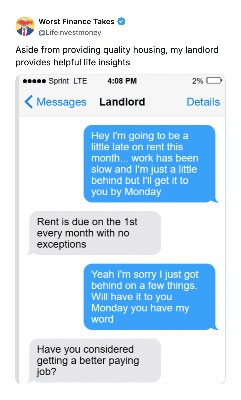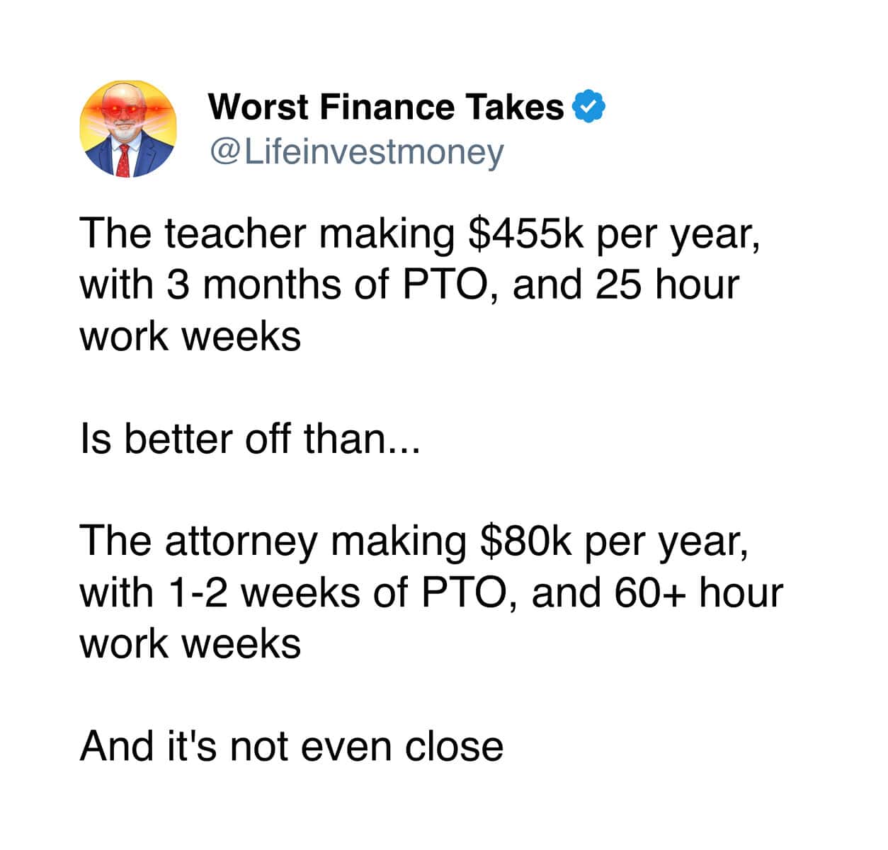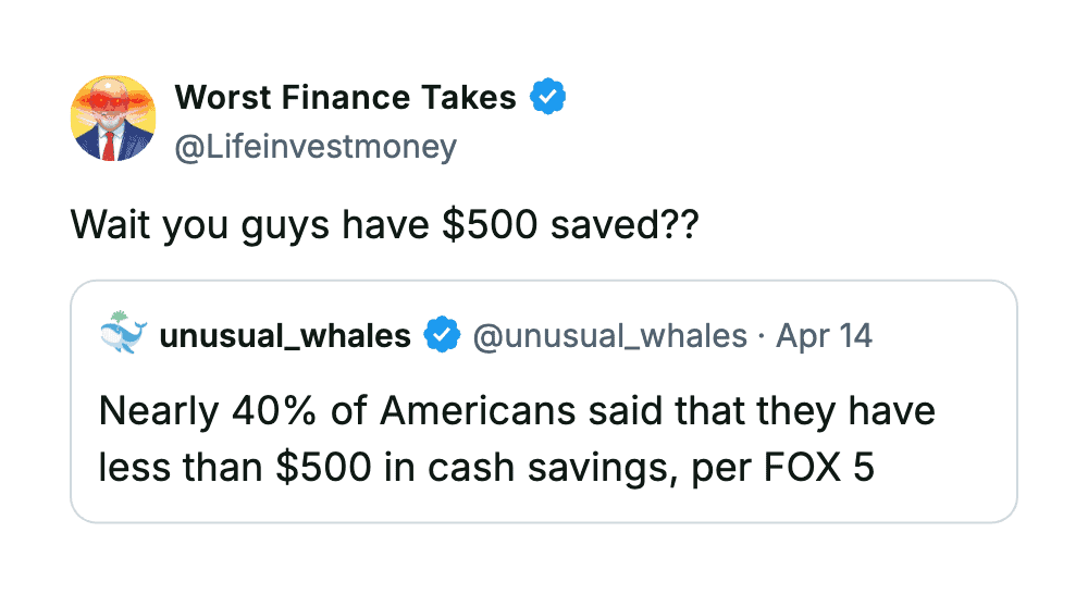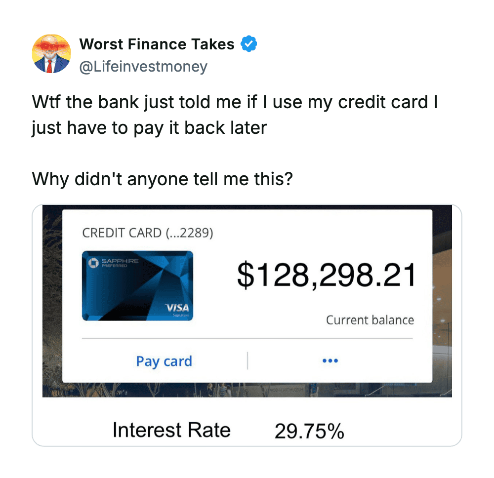 These are the kinds of takes that make you grateful you don’t know much about money… because apparently it could be worse.