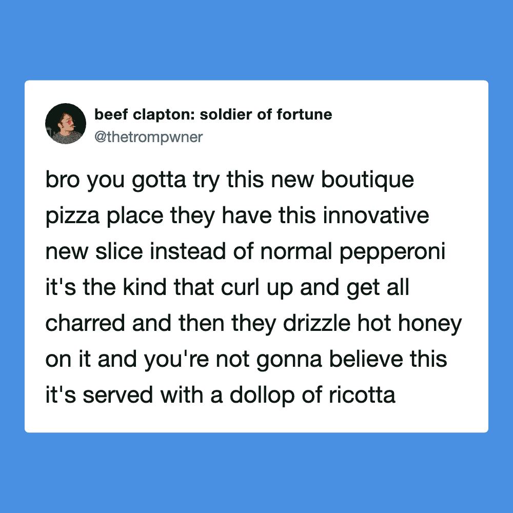 Somehow, the internet clocked in early today and immediately started delivering funny tweets like it had something to prove. I’m just here to enjoy it.