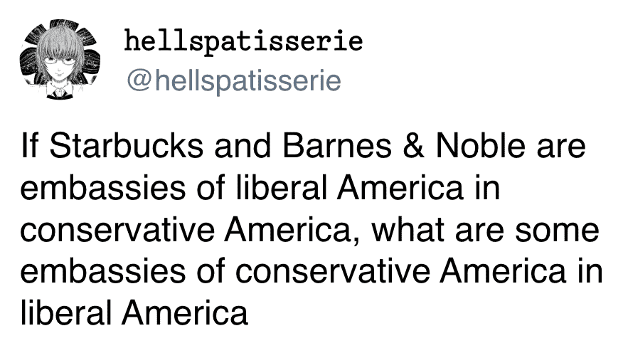That’s what makes this thread so funny. People are sharing the little “conservative embassies” tucked inside liberal America, the places and pockets where the vibe suddenly shifts hard.